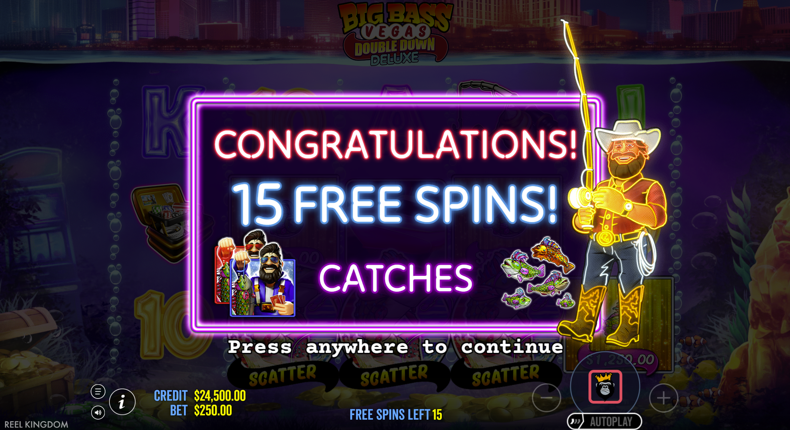 - Sticky Fisherman Guarantee: Fisherman Wild remains on reel 5 throughout free spins for automatic collections.